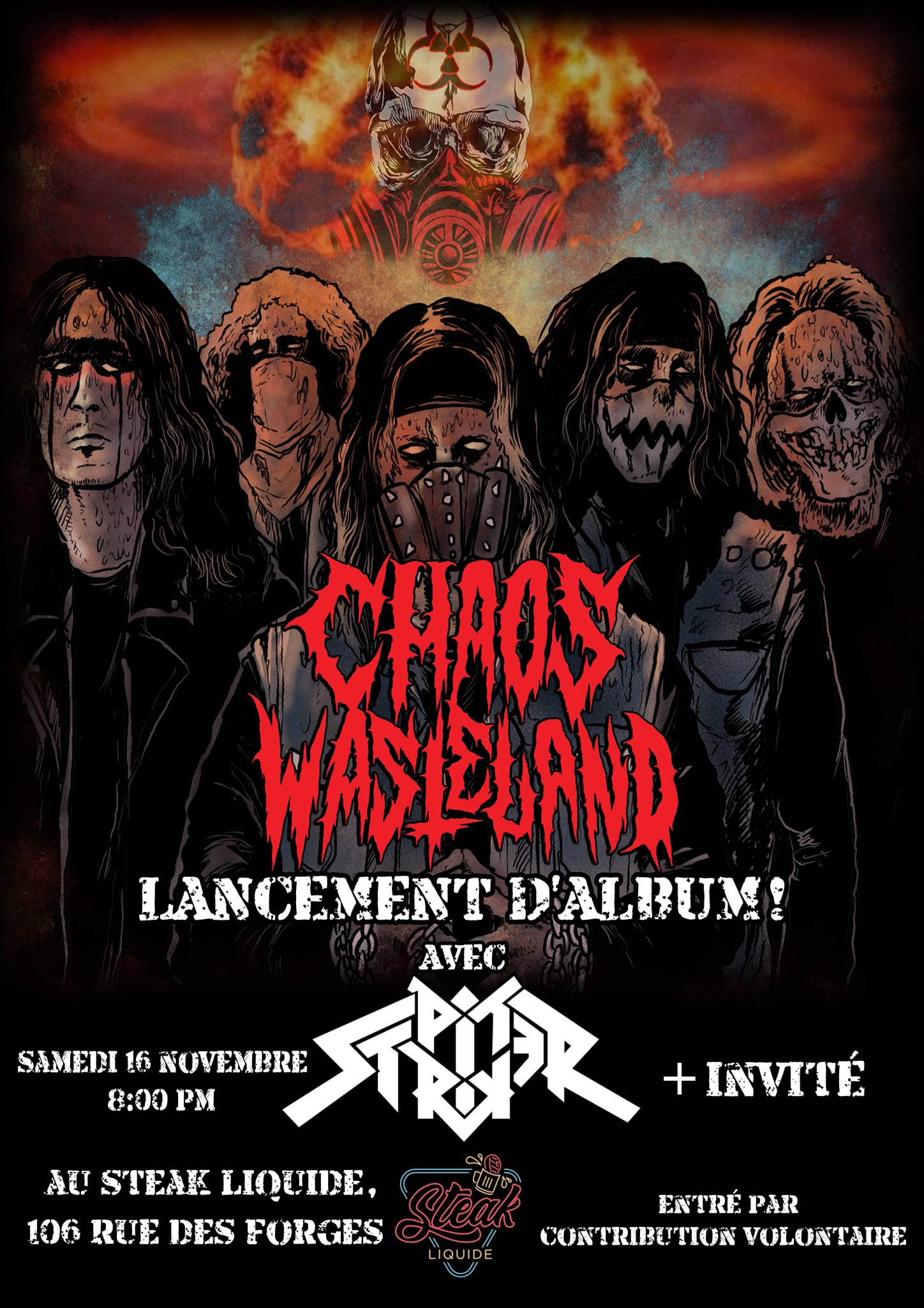 Louis-Simon Bellerose: ‘’Je te dirais que l’album a été composé en majorité, entièrement entre l’été 2019 et jusqu’à décembre 2023. On est entré en studio à la fin du mois et il y a même une pièce comme Evil Walking, la section du milieu de la »tune » où tu entends le sampling d’un politicien qui parle…toute cette section là a été composée pratiquement en studio. Il y a des paroles qui ont été modifiées aussi en studio. Je te dirais que l’album, on l’a travaillé jusqu’à la dernière seconde. Pis aussi, une affaire qui est à souligner, c’est que la pandémie a été bénéfique pour ça, parce qu’avant, on avait souvent, du moins, on essayait de faire des spectacles en même temps qu’on essayait de composer. Vu qu’on ne se voit pas énormément non plus, moi j’ai d’autres projets, André est souvent sur la route avec son emploi. Quand on se voyait, on n’avait pas le choix, si l’on avait un spectacle à répéter, on ne pouvait pas s’abandonner à la composition tant que ça. Quand la pandémie est arrivée, ça a vraiment donné un »go » pour composer parce qu’on avait rien que ça à faire. C’est vraiment un travail d’équipe entre moi, André et le drummer qu’on avait à l’époque, de 2019 à aller jusqu’en 2021, qui s’appelle Stéphane Desbiens. Le gros des »tunes », on les a composées avec lui. Pis Pat (Patrock) est arrivé en novembre 2022 et il se les ait vraiment appropriées parce que, rendu là, on avait toutes nos tunes. Ils se les ait approprié d’une belle manière et moi ç’a été l’affaire qui m’a dit que Pat c’était le bon gars pour nous parce qu’il est entré dans les nouvelles tunes de façon très à l’aise…il a mit son »feel » à lui et ça vraiment aidé à ce que l’album est devenu finalement. Les paroles, c’est une collaboration entre moi et André en particulier, surtout nous qui avons écrit les paroles…je te disais que l’album à été composé en majorité pendant la pandémie, une »tune » comme Beast, si tu écoutes les paroles comme il le faut, ça ressort un peu là dedans…ça paraît qu’on était dans la pandémie.’’