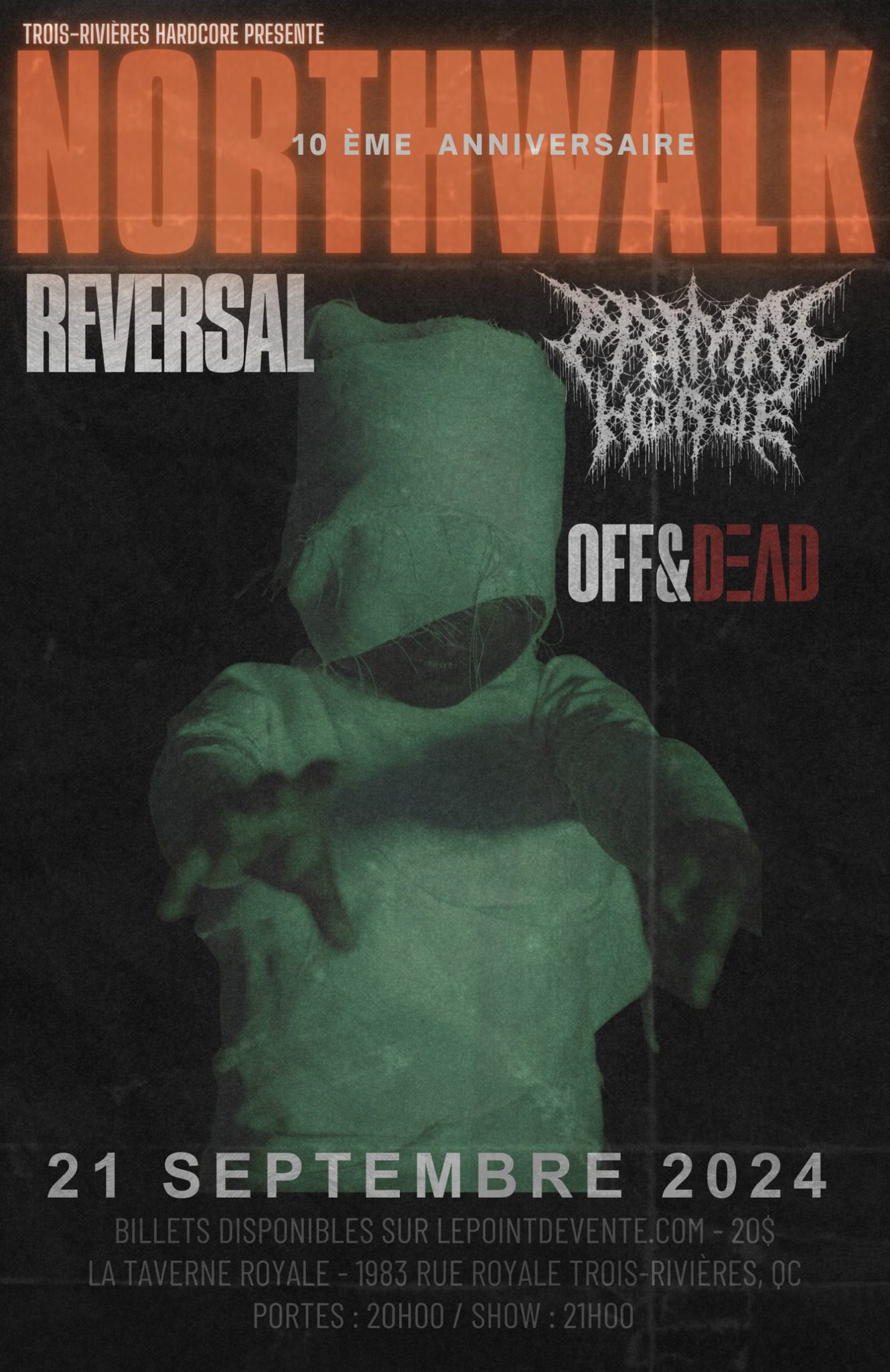 Dix ans…dix ans d’espoir, d’émotions, de musique, d’écriture, d’enregistrements, de pratiques et de spectacles. Dix ans et on y est. Ce soir, Northwalk fête sa décennie d’existence et s’entoure avec trois autres groupes très bien choisis pour l’événement. Cette chronique vous fera part de l’implication de chacun et se terminera avec différentes questions posées à David Plante, qui nous donnera un bilan sur le groupe dans cette décennie de hardcore québécois.