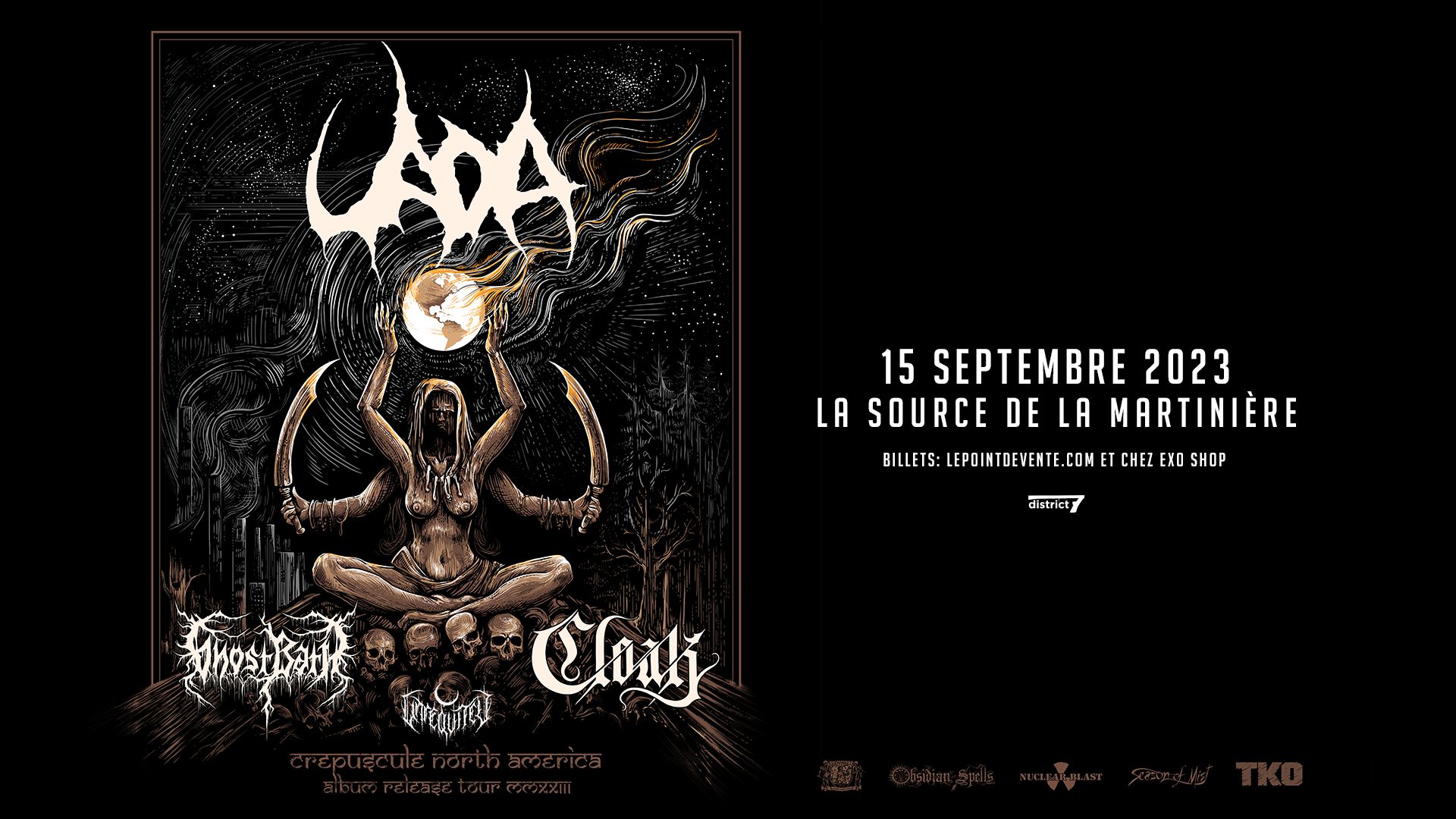 Voici le compte rendu de Phil Grondin lors du spectacle de UADA présenté par District 7 Production à la La Source de la Martinière de Québec le 15 septembre 2023 et qui mettait également à l’affiche Ghost Bath, Cloak et Unreqvited