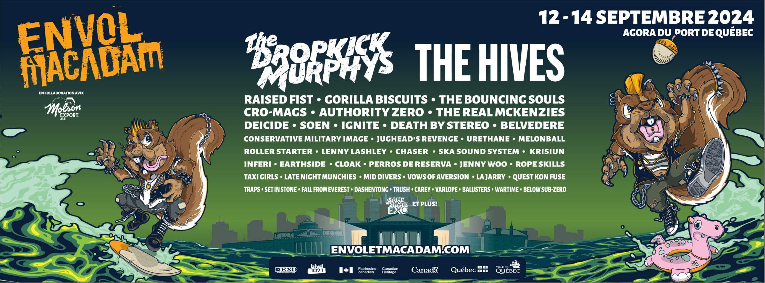 Agora du Port de Québec 17 h 00 – Rope Skills 17 h 50 – The Real McKenzies 19 h 00 – The Bouncing Souls 20 h 10 – Gorilla Biscuits 21 h 30 – The Hives