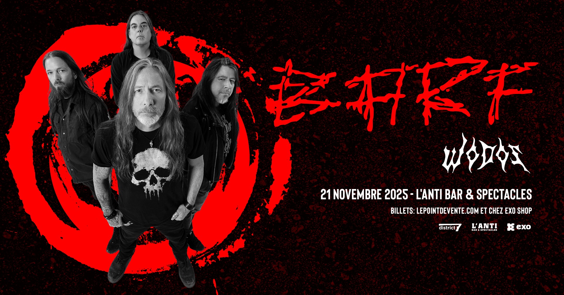 Voici les photos prises par Jimmy St-Pierre Gariépy lors du spectacle de BARF présenté par District 7 Production à L’Anti Bar & Spectacles de Québec le 21 novembre 2025 et qui mettait également à l’affiche Wodos