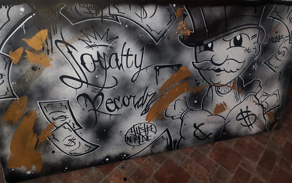 R : Je dirais que je commence à avoir mon style qui est plus Cartoon/street art. J’essaye de mettre le plus de méthodes possible. Principalement, j’utilise de l’acrylique, spray can, feutre et le collage.