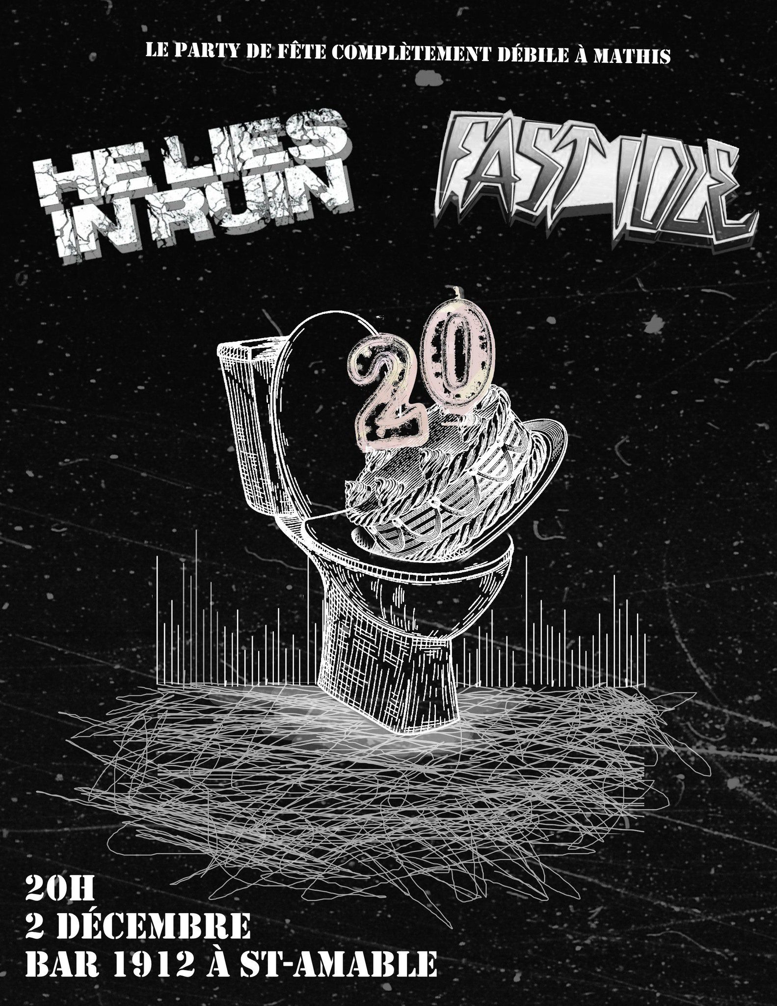 Pour célébrer ses 20 ans, Mathis Laflamme conviait famille et amis à un double bill présentant son coup de coeur du pré-fest Communion: Fast Idle et son groupe au sein duquel il joue du drum: He Lies in Ruin.