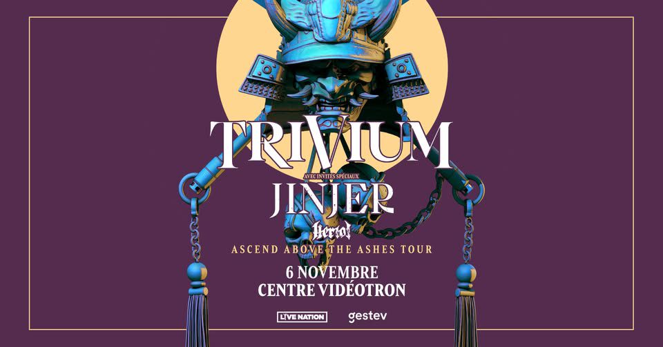 Voici le compte rendu de Jade Poliquin et les photos prises par Jimmy St-Pierre Gariépy lors du spectacle de Trivium présenté par Gestev et Live Nation au Centre Vidéotron de Québec le 6 novembre et qui mettait également à l’affiche Jinjer et Heriot.